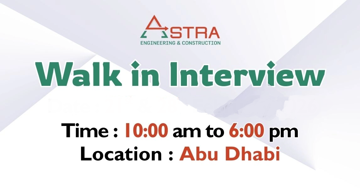 The current walk in interview in Abu Dhabi is focused on hiring for the following role: