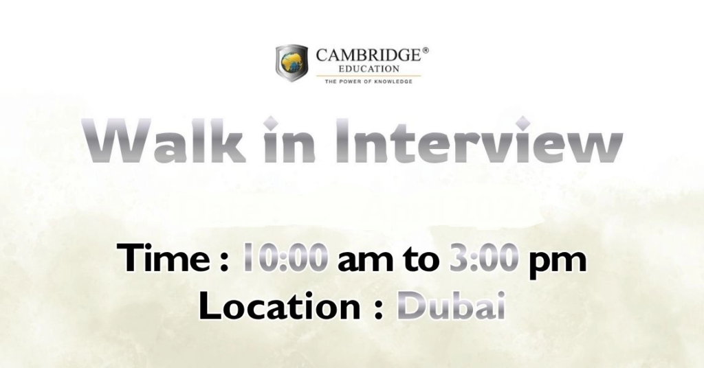 Cambridge Education Walk in Interview in Dubai