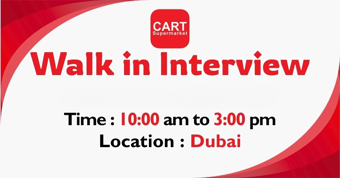 Read MoreCart Supermarket Walk in Interviews in Dubai Cart Supermarket is conducting Walk-in Interviews in Dubai. The hiring event which starts