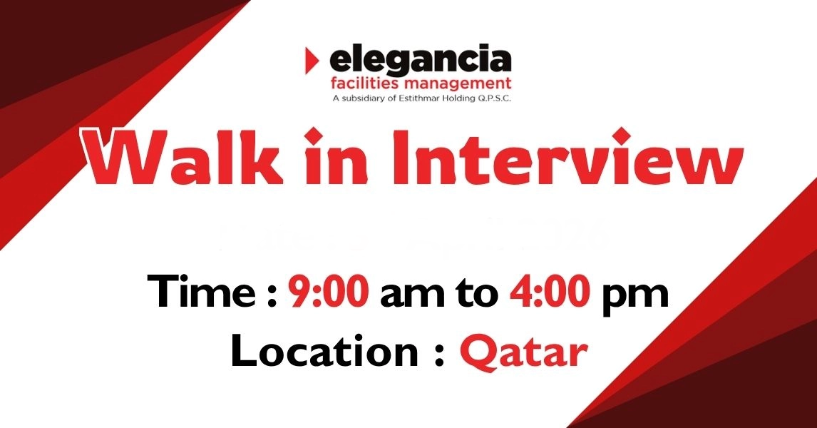 Read MoreElegancia Walk in Interview in Qatar A remarkable career opportunity is now open as Elegancia Facilities Management announces a Walk-in