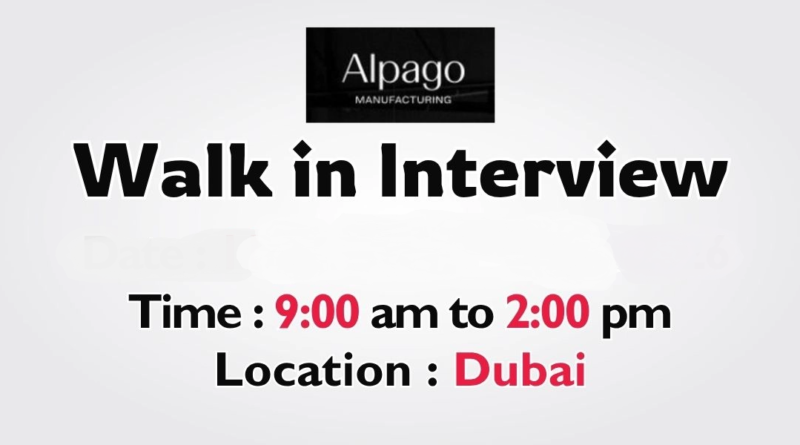Read MoreAlpago Manufacturing Walk in Interview in Dubai Alpago Manufacturing will conduct its walk-in interview process in Dubai throughout 2026 multiple