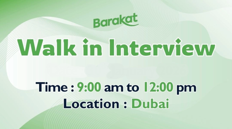 Read MoreBarakat Walk in Interview in Dubai The Barakat Walk in Interview in Dubai has created a main employment opportunity which