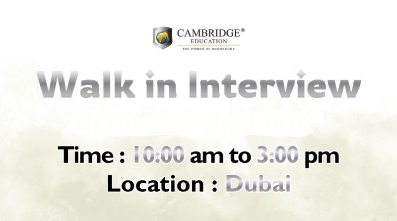 Read MoreCambridge Education Walk in Interview in Dubai A great opportunity is here for job seekers as Cambridge Education Walk in
