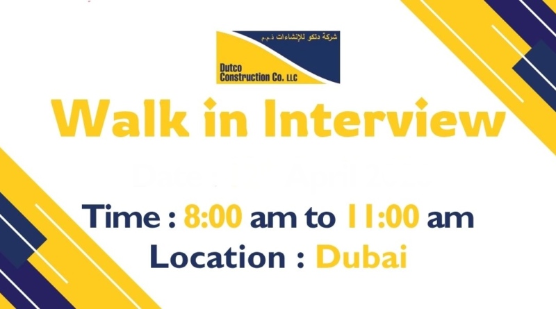 Read MoreDutco Construction Group Walk in Interview in Dubai Dutco Construction Group will conduct Walk in Interview events at their Dubai