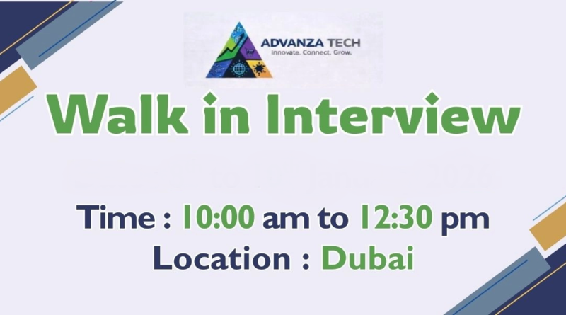 Read MoreAdvanza Tech Walk in Interviews in Dubai The latest Advanza Tech Walk in Interviews will take place in Dubai on