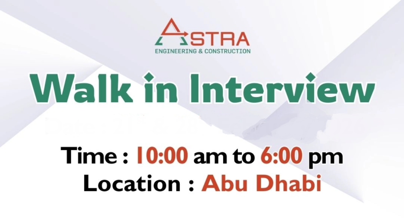 Astra Engineering Recruitment in Abu Dhabi Astra Engineering & Construction has begun its recruitment process in Abu Dhabi which will