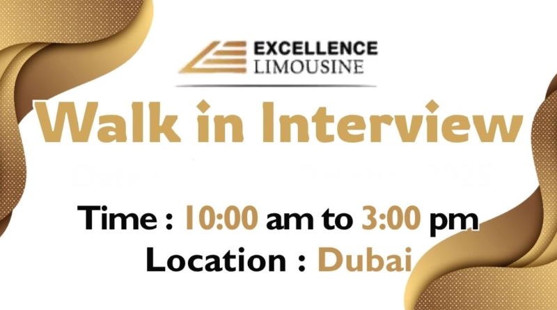 Read MoreExcellence Limousine Walk in Interview in Dubai Excellence Premium Limousine Services has announced its Walk in Interview in Dubai which