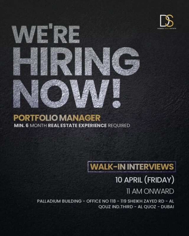The latest hiring opportunity has generated high demand from job seekers because D&S Homes Real Estate will conduct its upcoming Walk in Interview event in Dubai. The recruitment drive creates multiple career pathways which lead to professional growth in the competitive property market of the UAE. The opportunity offers attractive salary packages and commission-based earnings which make it suitable for both experienced workers and new graduates who want to launch their real estate careers.