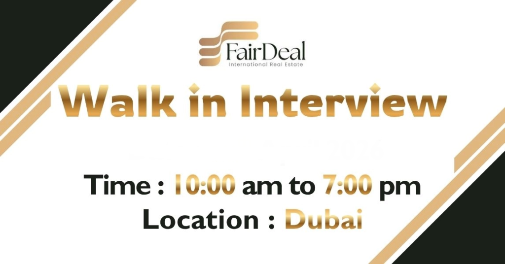 The FairDeal International Real Estate Walk in Interview in Dubai presents new job opportunities through its latest hiring announcement. The walk-in interview provides entry-level professionals and fresh graduates with an excellent opportunity to obtain rewarding employment positions in the expanding real estate market of the UAE.
