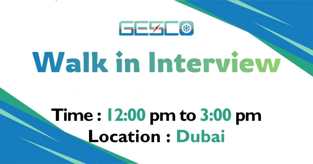 Are you an established engineering professional searching for excellent job opportunities in Dubai? Ginco Electrical & Sanitizing Contracting Co. LLC (also known as GESCO) has organized a walk-in interview to recruit engineers for various roles in Dubai.6 The recruitment event provides engineering professionals with an important chance to work at one of the leading mechanical electrical and plumbing contracting companies based in the United Arab Emirates.