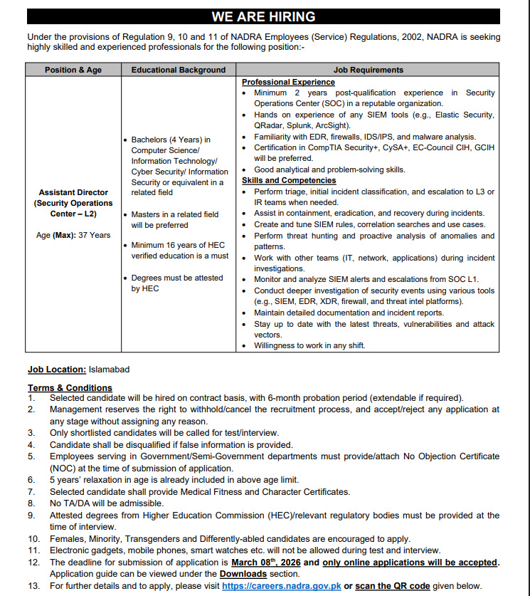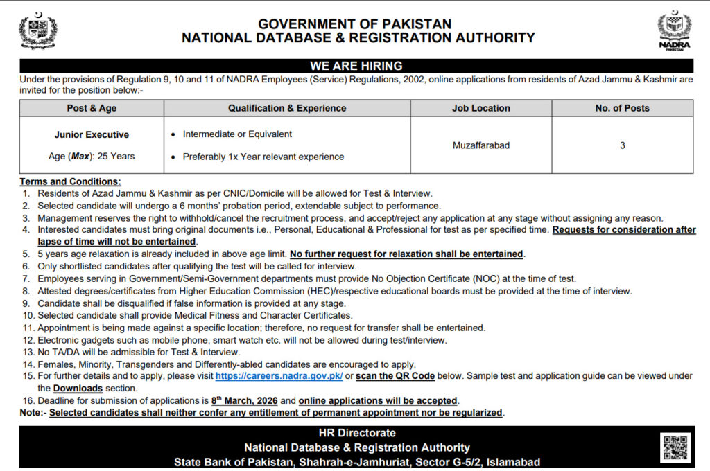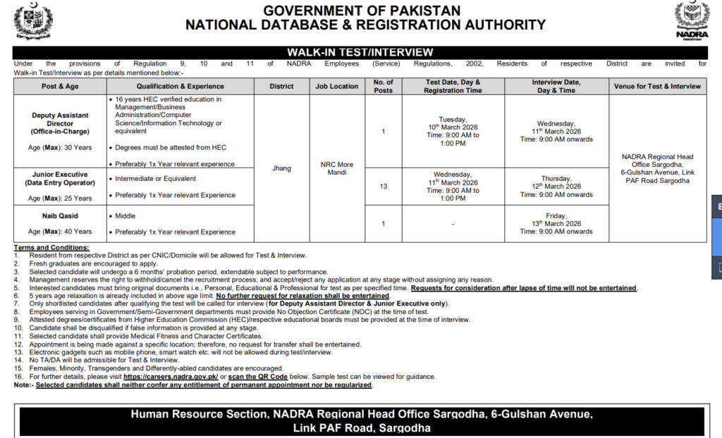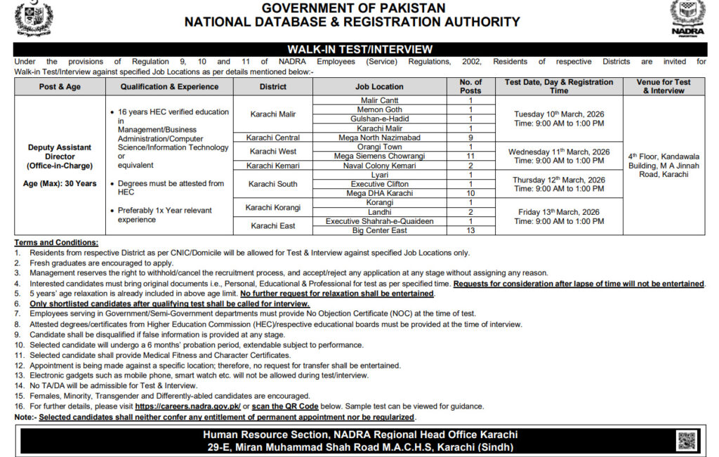 NADRA Jobs Online Apply 2026 For Pakistani Male and Female Apply Online. Are you seeking an excellent career opportunity in the government sector in 2026? NADRA Jobs Online Apply 2026 Online Apply has announced the latest job openings for the year 2026, providing exciting roles for job seekers across Pakistan.
