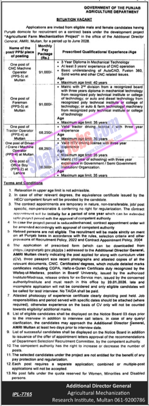Today Jobs in Punjab Agriculture Jobs 2026