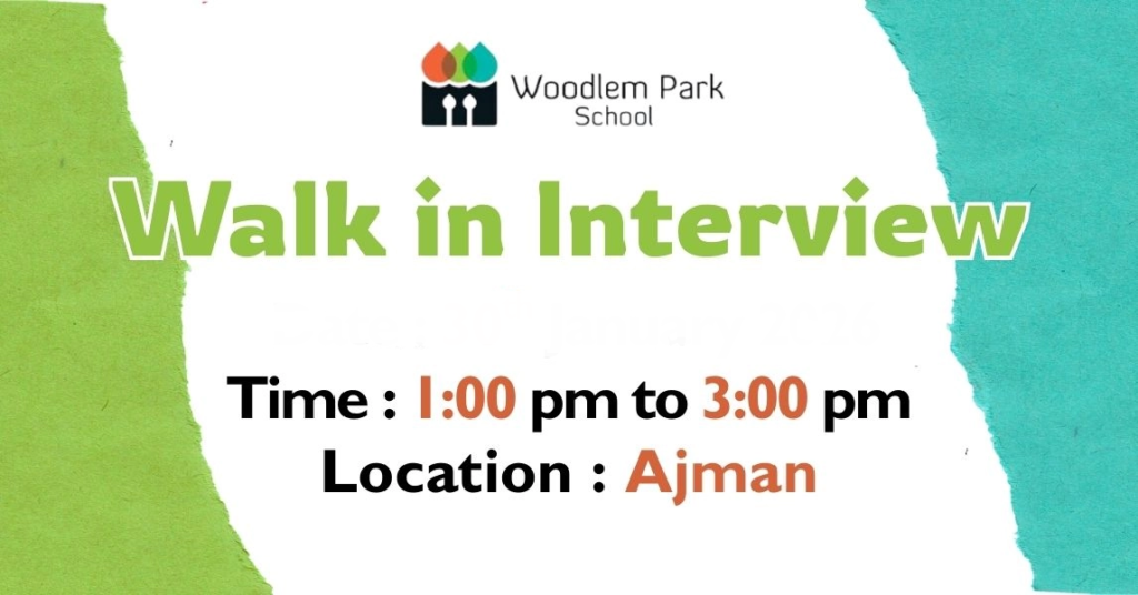 The Woodlem Park School Walk in Interview in Ajman will take place on 20 April 2026 from 1:00 PM to 3:00 PM for teachers who meet the required qualifications and demonstrate dedication to their work. The educational institution offers a valuable opportunity for employment because it maintains a strong commitment to exceptional teaching and learning practices.